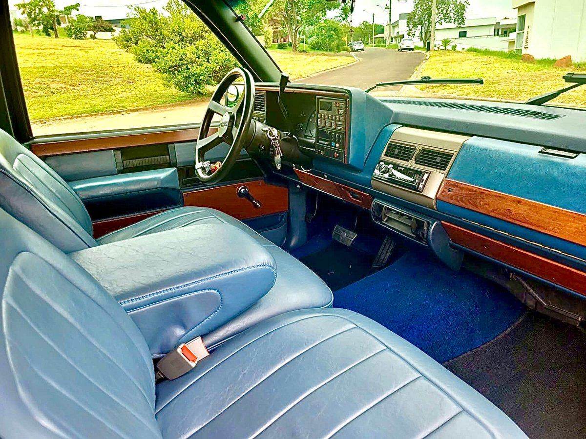 - Interior azul com bancos em couro